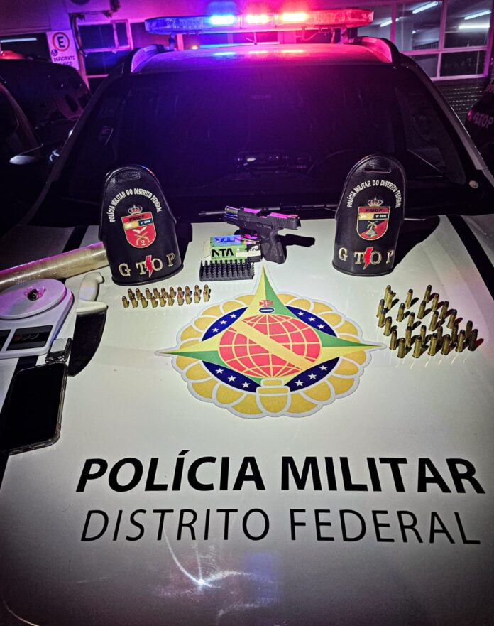 No último dia 12 de janeiro de 2024, a Polícia Militar do Distrito Federal, por intermédio dos Grupos Táticos Operacionais (GTOP29 e 22), desencadeou uma operação que resultou na condução de três indivíduos, sendo uma do sexo feminino, e na apreensão de armas, munições e drogas. A ação, que teve como natureza o “Porte Ilegal de Arma de fogo”, teve seu desfecho na quadra 26/29 do Setor Oeste, no Gama.