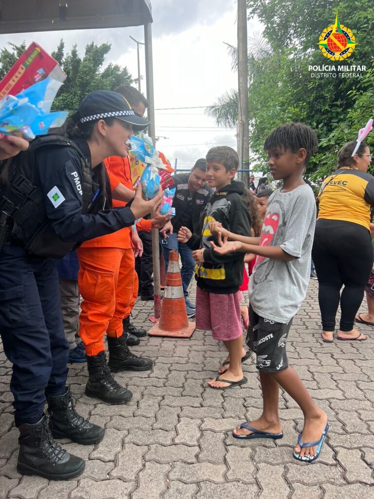 Mais de 1.000 crianças participaram de um momento lúdico e de entretenimento com a “Páscoa Solidária” no Centro do Varjão, na manhã deste sábado (23). A iniciativa partiu do 24º Batalhão em busca de fortalecer os laços entre a polícia e a comunidade, contando com o apoio da Administração Regional, Associações locais e outros parceiros, incluindo órgãos de segurança pública como a Polícia Civil, Corpo de Bombeiros e DETRAN.