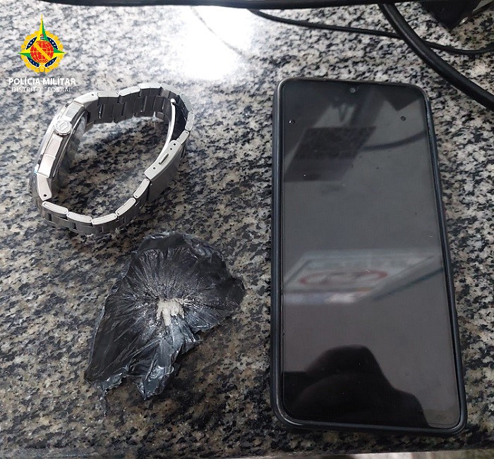 Durante patrulhamento, policiais militares do Grupo Tático Operacional 37 (Gtop 37), abordaram dois homens que estavam em Fiat/Uno na QS 8. Durante o procedimento foi encontrado, com um dos homens, uma porção de substância parecida com cocaína e um celular que estava com restrição de furto. O abordado, que tem passagem por tráfico de drogas, foi encaminhado à delegacia para registro da ocorrência.