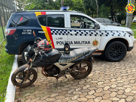 Durante a busca pessoal, nenhum item ilícito foi encontrado com os indivíduos, porém, uma nova pesquisa confirmou que se tratava de um veículo produto de roubo. Diante dos fatos, os policiais conduziram ambos os indivíduos, juntamente com a motocicleta, para a 13ª Delegacia de Polícia, onde foram tomadas as providências legais cabíveis.