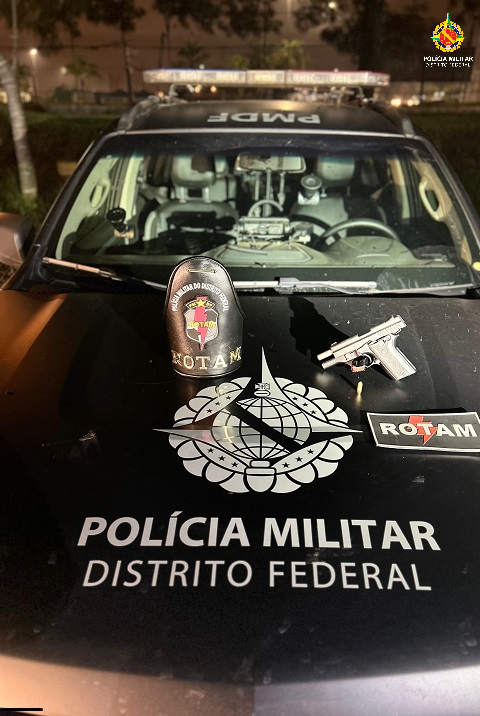 Na Samambaia, os policiais do Batalhão de ROTAM, prenderam um indivíduo pelo crime de posse irregular de arma de fogo. Ele portava uma pistola com uma munição intacta.