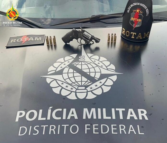 Na tarde de hoje (25) no SIA trecho 3 em patrulhamento uma viatura da Polícia Militar do Batalhão de ROTAM chegou próximo de um veículo que arrancou de forma brusca repentinamente, a guarnição da Polícia Militar que estava em patrulhamento acompanhou o veículo, no lado do passageiro um dos indivíduos arremessou um objeto, após alguns segundos houve outro arremesso, quando a guarnição conseguiu abordar o veículo e ao retornarem aos locais que teriam sido arremessados os objetos, localizaram uma arma de fogo calibre .38 com quatro munições intactas num coldre e um pote com 8 munições intactas.