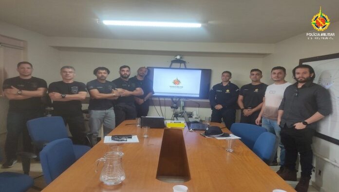 O Major Olavo, Comandante do Cmbel recebeu a comitiva formada por sete policiais que, durante 3 horas, receberam instruções sobre gestão de material bélico.