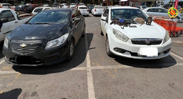 Durante o patrulhamento, os policiais avistaram os carros trafegando e deram ordem de parada.