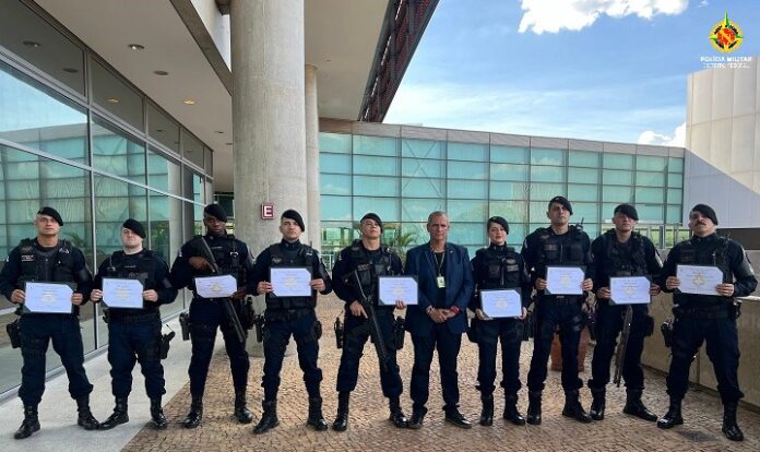 Em uma cerimônia solene na Câmara Legislativa do Distrito Federal (CLDF), os policiais militares do Grupo Tático Operacional 35 (GTOP 35) foram agraciados com uma Moção de Louvor pelo Deputado Hermeto, nesta quinta-feira (14). A honraria reconheceu as ações heroicas da equipe em duas operações de alto risco que envolveram a prisão de um foragido e a neutralização de um agressor em uma ocorrência de feminicídio.