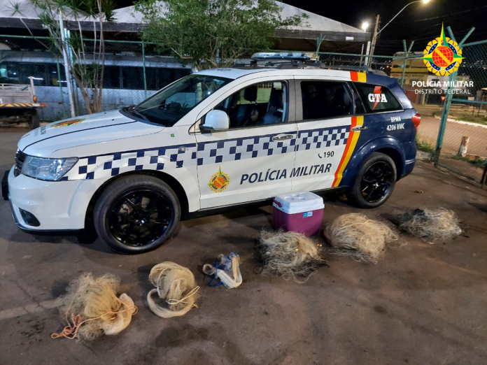 Em uma operação visando coibir ilícitos comuns e ambientais na área rural de São Sebastião-DF, na rodovia DF-285 x DF-100, a equipe de GTA – Grupo Tático Ambiental do BPMA realizou uma abordagem que levou à apreensão de petrechos de pesca proibidos e pescado irregular, na tarde de hoje (17).