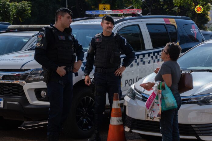 O efetivo policial foi liberado a partir das 13h na quadra 6 do Setor Comercial Sul em frente ao Banco Safra, considerando a previsão de aumento nas vendas de presentes de Natal na região.
