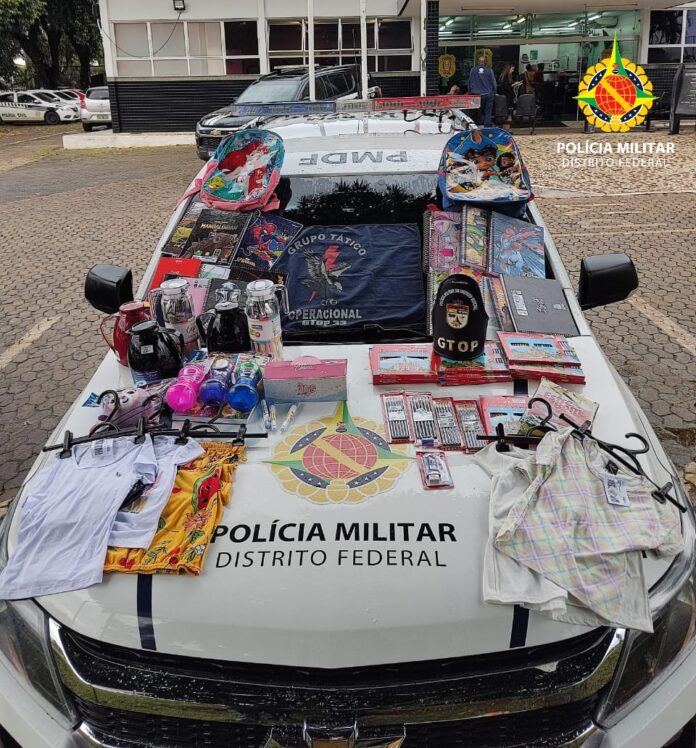 Dentro do veículo estavam roupas, material escolar, ferramentas, garrafas térmicas e talheres, num total de 67 itens.