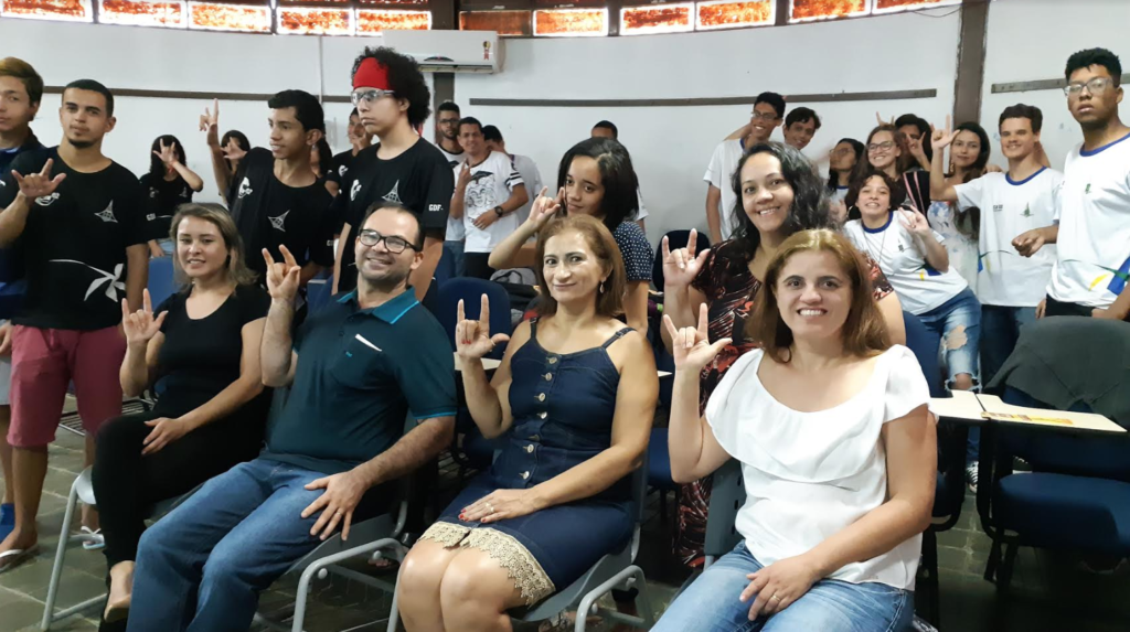 Pela primeira vez, alunos do ensino médio da Escola Polo de Surdos da Ceilândia, instalada no Centro de Ensino 2, participaram de uma oficina de literatura de cordel. O evento fez parte do projeto A magia do Cordel, desenvolvido pelo professor Raimundo Nonato Sobrinho, desde agosto deste ano, em escolas públicas da Ceilândia. Durante quase duas horas, cerca de 50 estudantes surdos, entre leves, moderados, profundos e severos tiveram contato com a literatura popular brasileira com o apoio da professora Rute Vilela que interpretou a eles, em Libras, todo o conteúdo explanado.