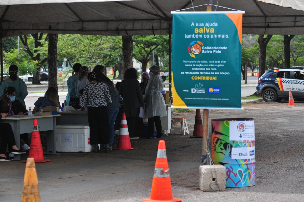 As doações de sacos de ração podem ser feitas no Parque da Cidade, no Plano Piloto, Shopping Iguatemi (Lago Norte) e na Faculdade Uniplan de Águas Claras. Esses são os pontos de vacinação contra a covid-19 que mais têm recebido doações de alimentos e cestas básicas da campanha Solidariedade Salva.