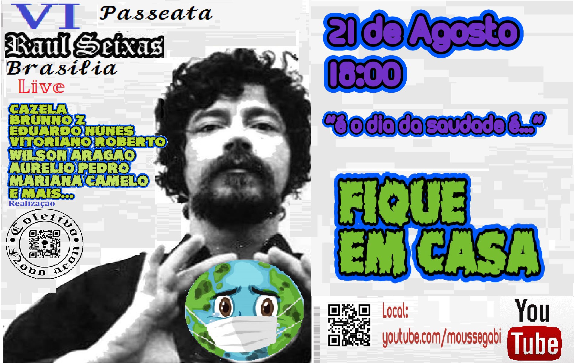 2020 promove uma releitura de um evento já consagrado e muito querido do público brasiliense. Criada a cinco anos, a Passeata Anual de Raul Seixas em Brasília muda mais uma vez o endereço de sua realização. Teve 4 edições no Setor Bancário Sul (SBS), e dessa vez será 100% online, transmitida pelo Youtube.