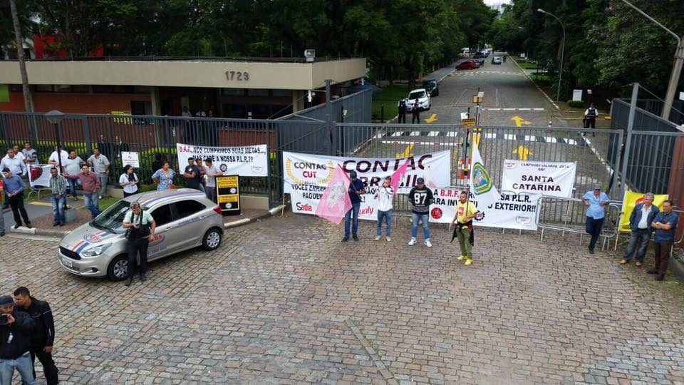 Entidades sindicais que representam 110 mil trabalhadores da BRF no Brasil fizeram uma manifestação em frente à sede da empresa, na manhã dessa terça (14/3), em São Paulo (SP). Com carros de som, faixas e gritos de ordem, cerca de 150 dirigentes de sindicatos, federações, confederações e centrais sindicais cobraram o pagamento da Participação nos Lucros e Resultados (PLR), referente a 2016. Na ocasião, a BRF se recusou a receber ofício assinado pelos organizadores do ato: a Confederação Nacional dos Trabalhadores nas Indústrias de Alimentação e Afins (CNTA Afins) e a Confederação Brasileira Democrática dos Trabalhadores nas Indústrias da Alimentação da CUT (Contac). Uma nova manifestação está prevista para esta quarta (15/3), no Centro de Distribuição da BRF, em Embu (SP). Categoria não descarta a possibilidade de greve geral nos próximos dias.