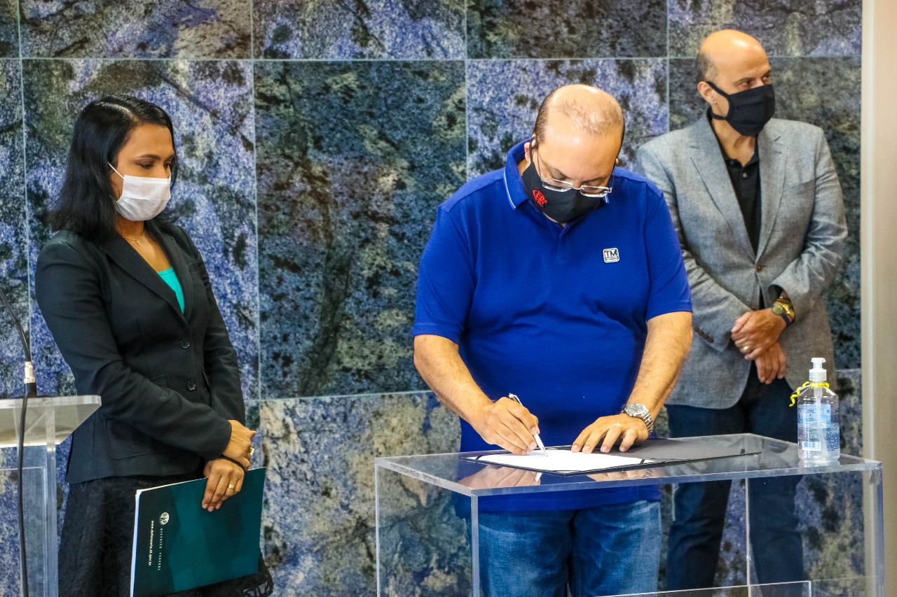 O governador Ibaneis Rocha assinou o termo de posse do segundo mandato de Maria José de Nápolis em cerimônia com a presença do vice-governador do DF, Paco Britto, e o chefe da Casa Civil, Valdetário Monteiro.