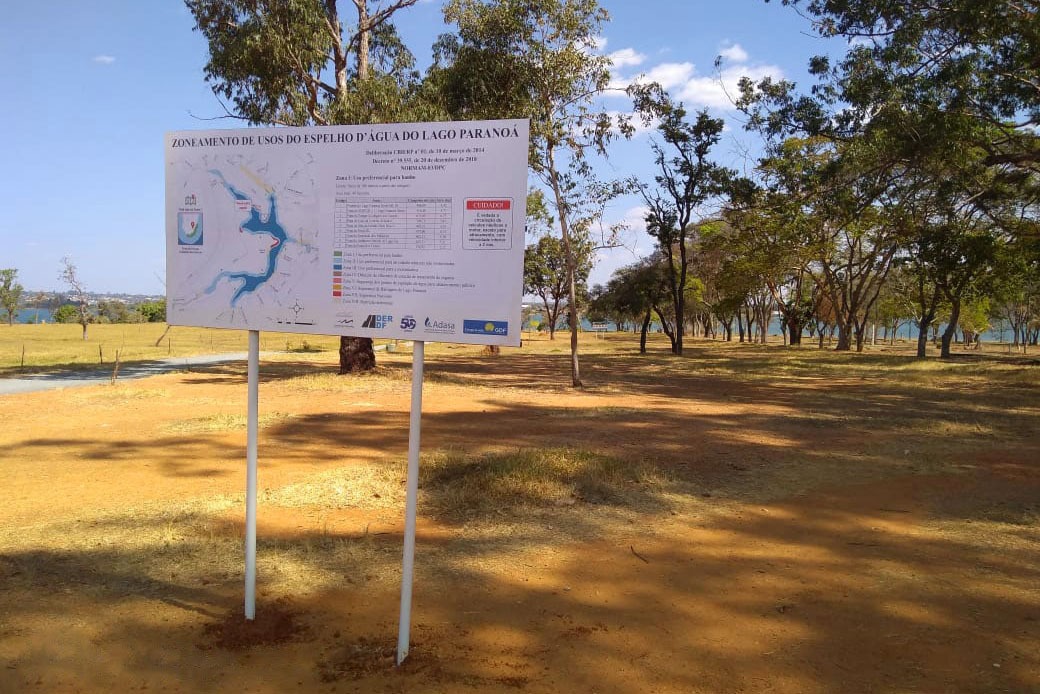 O Lago Paranoá começou a receber, na manhã desta terça-feira (1), as primeiras placas que delimitam as zonas de uso do seu espelho d´água. As sinalizações estão sendo instaladas em quatro zonas preferenciais para banho: na orla da Ponte JK, na praia da QL 11 do Lago Norte, no Parque das Garças e na Praia do Cais da Concha Acústica, localizada no Setor de Clubes Esportivos Norte.