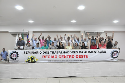 O encerramento do Seminário Regional da Alimentação no Centro-Oeste, nessa quarta (23/11), teve como documento final carta pública com as principais decisões e posicionamento coletivo sobre os problemas enfrentados pelos 200 mil trabalhadores nos Estados de Goiás, Mato Grosso, Mato Grosso do Sul e Distrito Federal. Realizado em Cuiabá (MT) pela Confederação Nacional dos Trabalhadores nas Indústrias de Alimentos e Afins (CNTA Afins), o texto traz ações em defesa da equiparação de gênero no mercado de trabalho, unicidade sindical e sua forma de custeio, criação de forças-tarefas estaduais, cumprimento de normas que visam a saúde e segurança no trabalho, entre outros.