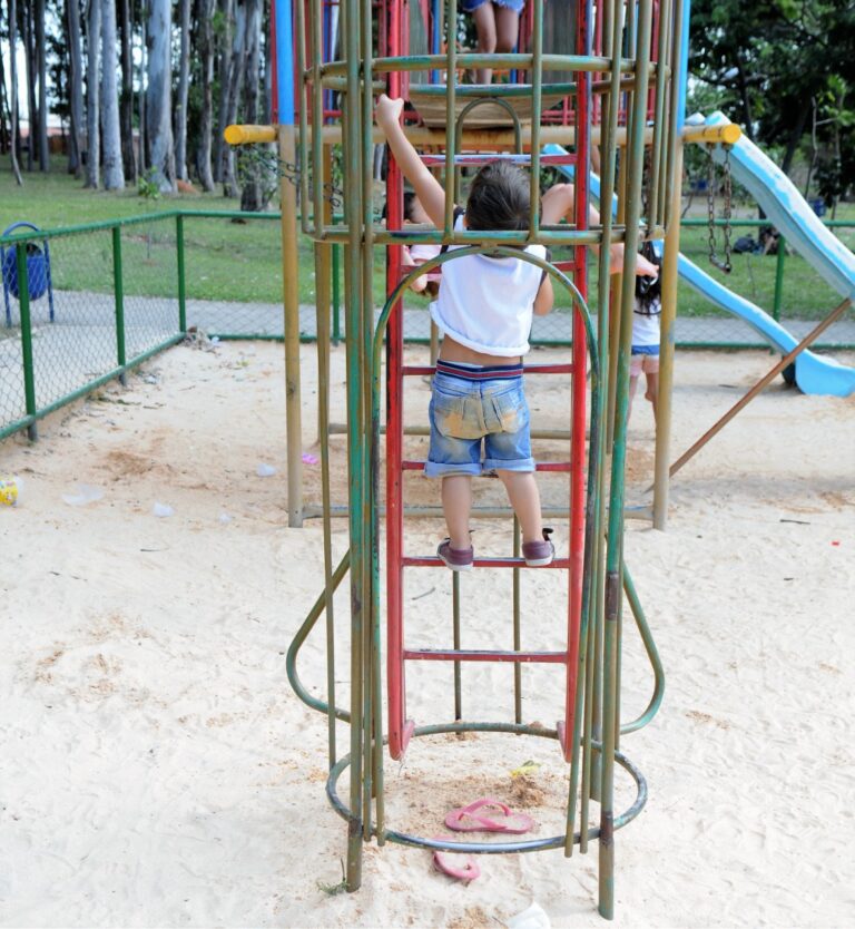As obras já estão avançadas no parque infantil. A prioridade foi o conserto da passarela que dá acesso ao foguete. Foram feitos também reparos no portão e em pontos de ferragem. A próxima etapa é a reposição da areia.