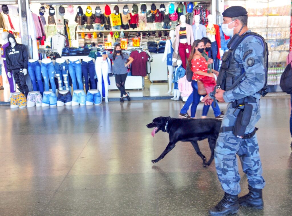 Em cerca de 20 minutos de operação, Iron – um pastor malinois de 1 ano e meio – entrou rapidamente em uma banca de produtos eletrônicos, fuçou e parou estático em frente a uma gaveta. Ali, o policial recolheu um cigarro de maconha guardado por um vendedor. Missão cumprida, Iron ganhou sua recompensa: uma bolinha de borracha para brincar antes de seguir na missão.