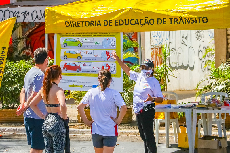 Agentes de fiscalização do Detran-DF também distribuíram material educativo e máscaras de proteção facial para os frequentadores.