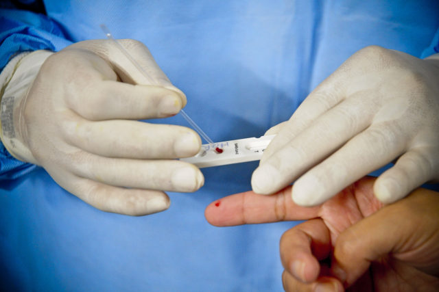 Os testes rápidos são feitos a partir da coleta de uma gota de sangue e detectam a presença dos anticorpos de defesa do organismo para combater o vírus na corrente sanguínea. Recomenda-se que ele seja feito a partir do oitavo dia do início dos sintomas, quando os anticorpos já são mais detectáveis. O resultado costuma sair entre dez e 20 minutos.