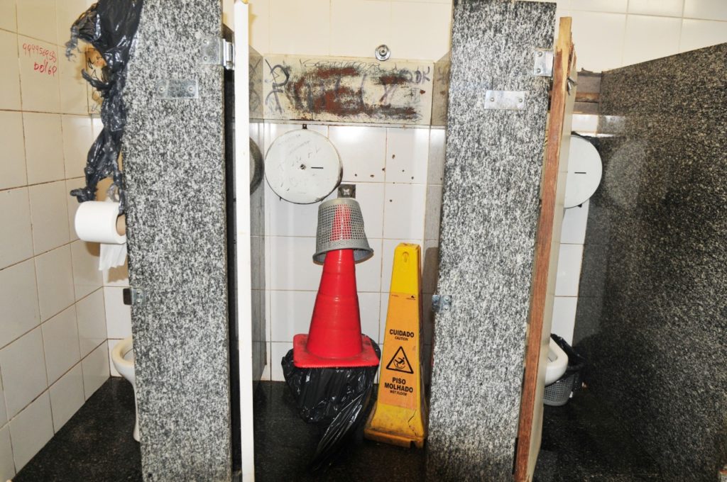 O terminal de Brasília funciona 24 horas por dia. Possui dez banheiros, sendo cinco de cada sexo. Nesta segunda-feira (31), oito deles tinham algum tipo de avaria. Mictórios arrancados, torneiras quebradas e as portas danificadas foram os principais estragos constatados pela reportagem da Agência Brasília.