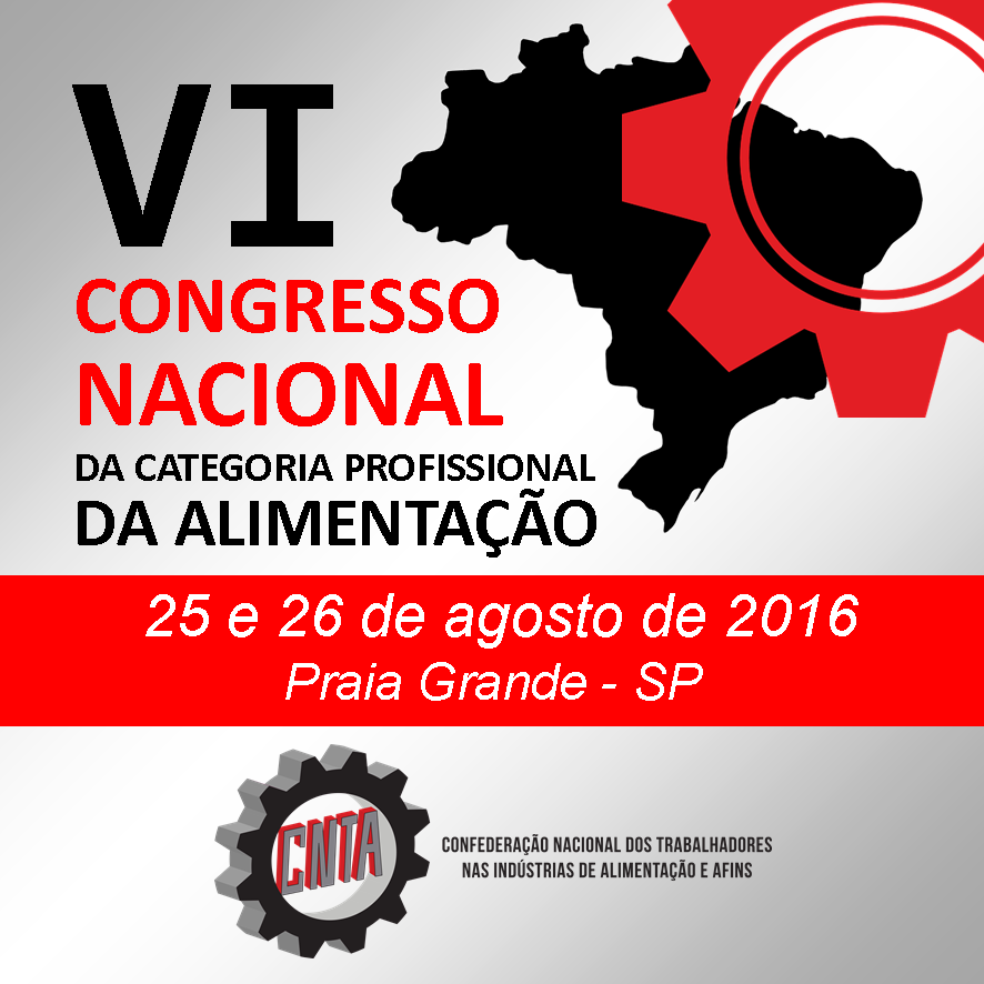 A Confederação Nacional dos Trabalhadores nas Indústrias de Alimentação e Afins (CNTA Afins) realiza nos dias 25 e 26 de agosto o VI Congresso Nacional da Categoria Profissional da Alimentação, em Praia Grande (SP). O objetivo do evento, que deverá reunir 300 pessoas, entre lideranças sindicais, autoridades e especialistas nas áreas do Direito, Saúde e Economia, é traçar metas para atuação das representações dos 1,6 milhão de trabalhadores da categoria para os próximos quatro anos. A Assembleia Geral Ordinária da categoria também ocorrerá na mesma data e local. O encontro contará ainda com a regional latinoamericana da União Internacional dos Trabalhadores nas Indústrias da Alimentação (UITA).